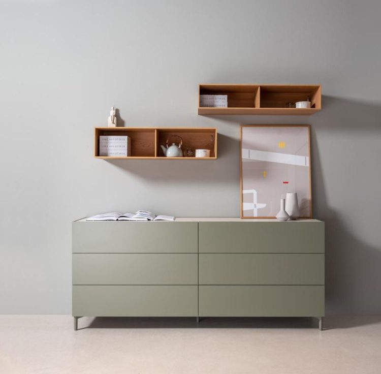 Strettoの本体は4種類の幅(500㎜、1000㎜、1500㎜、2000㎜)と3種類の高さ(500㎜、750㎜、1000㎜ ※脚の高さは含みません。)をご用意しており、カラーはクラシックなブラックやホワイトからセージやココアなどの温かみのあるトーンまで多岐に渡ります。