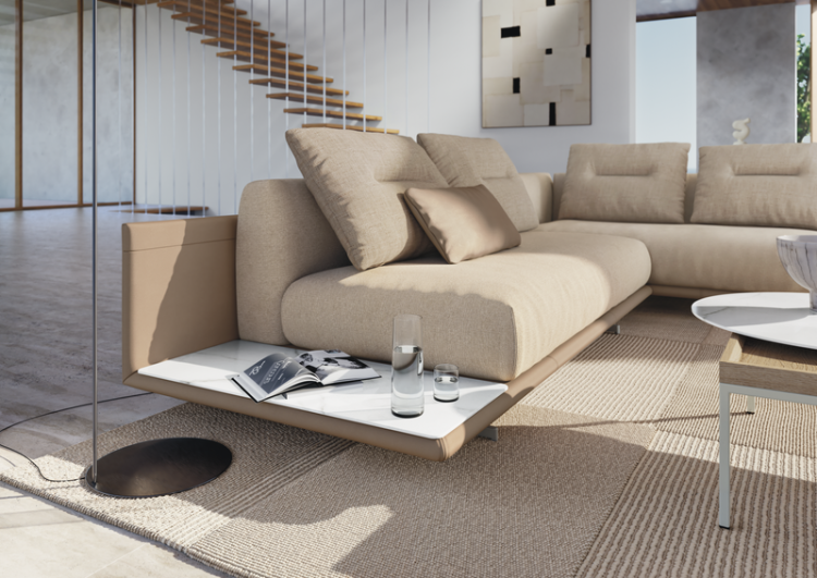 スリムで繊細なシルエットと上質な布張りのフレームが印象的な、Rolf Benz TAYA。